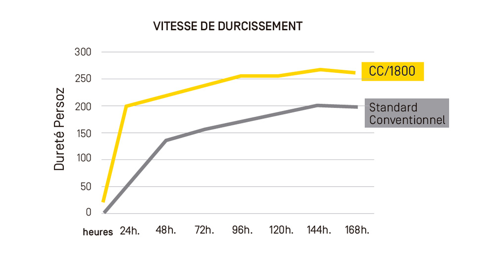 En outre, son excellente vitesse de durcissement fait du nouveau Vernis Céramique Plus CC/1800 un produit différentiel, dont les performances sont bien supérieures à celles des autres vernis du marché.